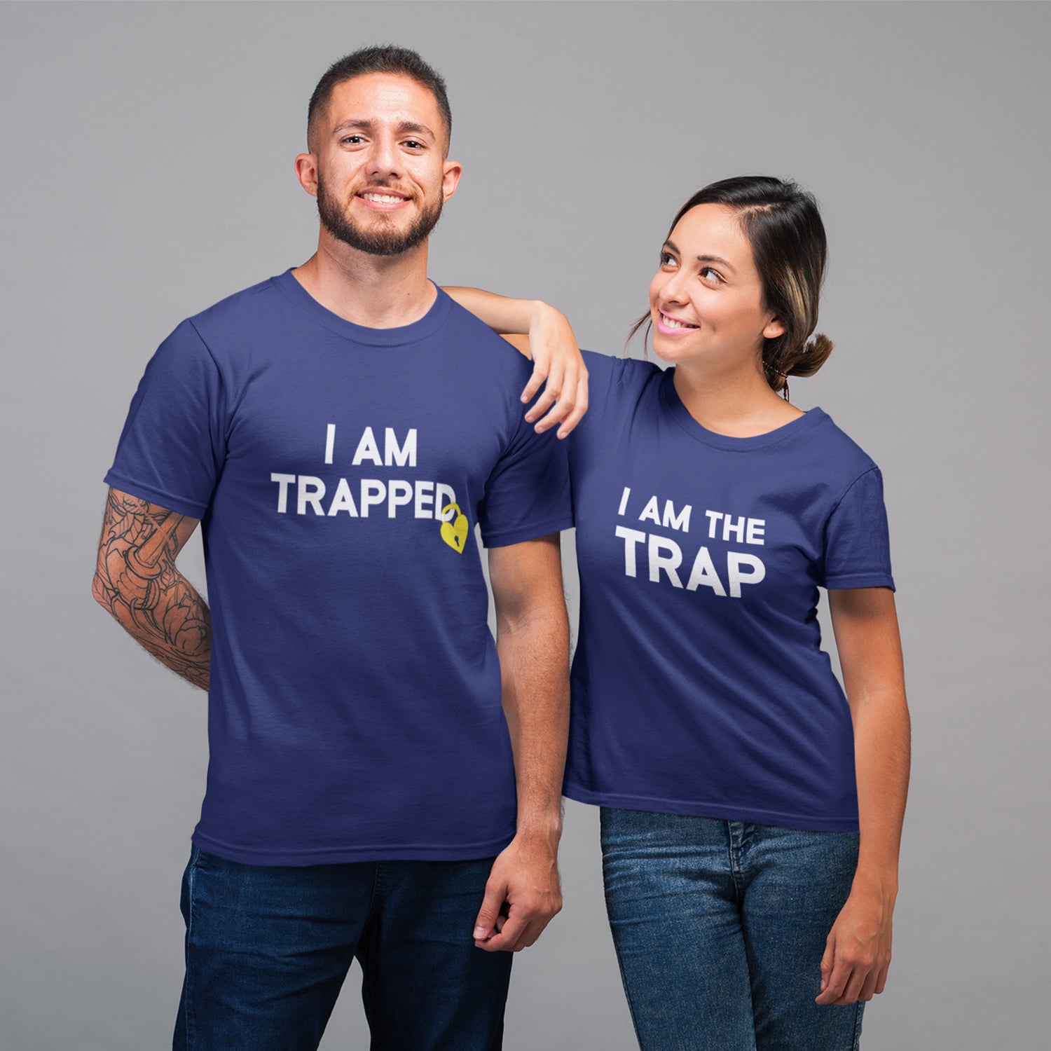 Product Description: Perfect for you and your special one, our I Am Trapped ,I Am the Trap Couple T Shirts are a must-have for every loving couple. These couple t-shirts are just excellent to go out on a date with your cute partner.