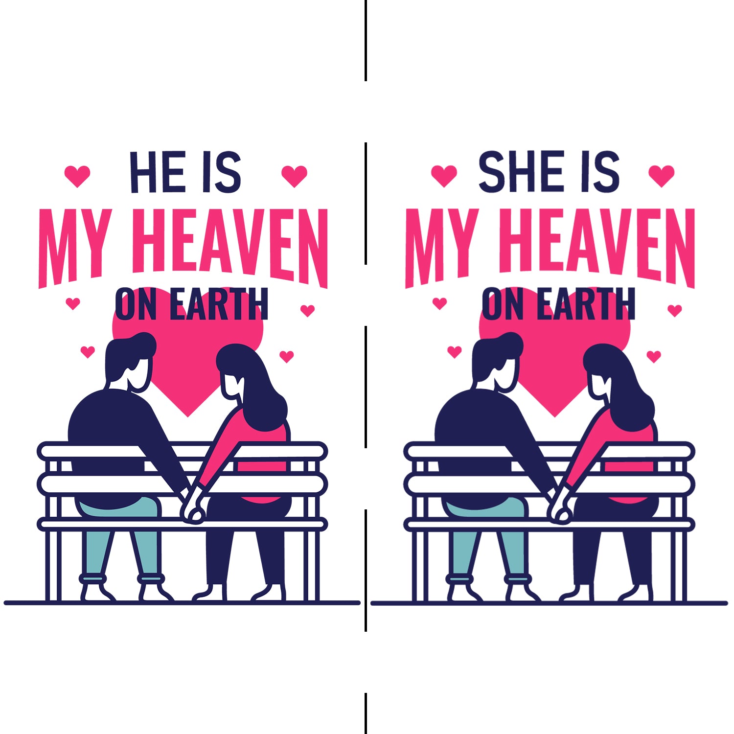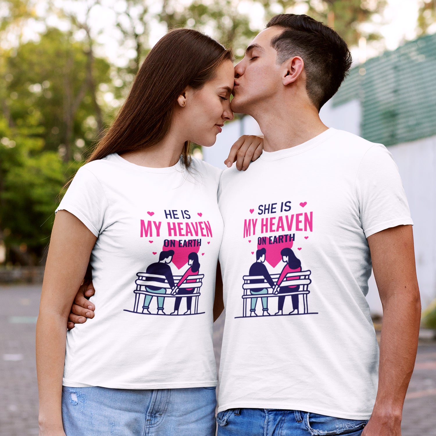 Product Description:Perfect for you and your special one, our She Is My Heaven On Earth, He Is My Heaven On Earth Couple T Shirts are a must-have for every loving couple. These couple t-shirts are just excellent to go out on a date with your cute partner.