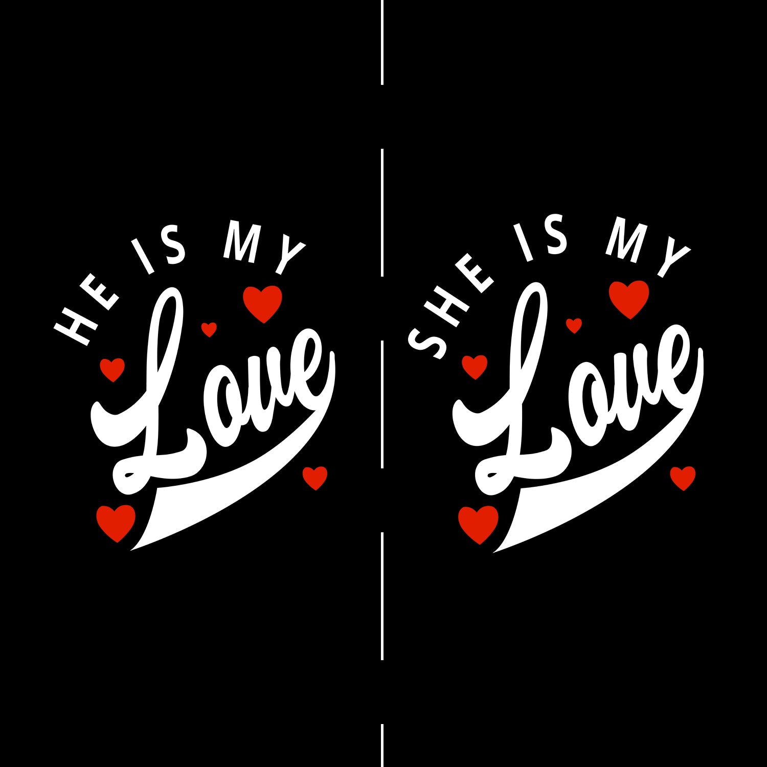 Product Description:Perfect for you and your special one, our He Is My Love , She is My Love Couple T Shirts are a must-have for every loving couple. These couple t-shirts are just excellent to go out on a date with your cute partner.