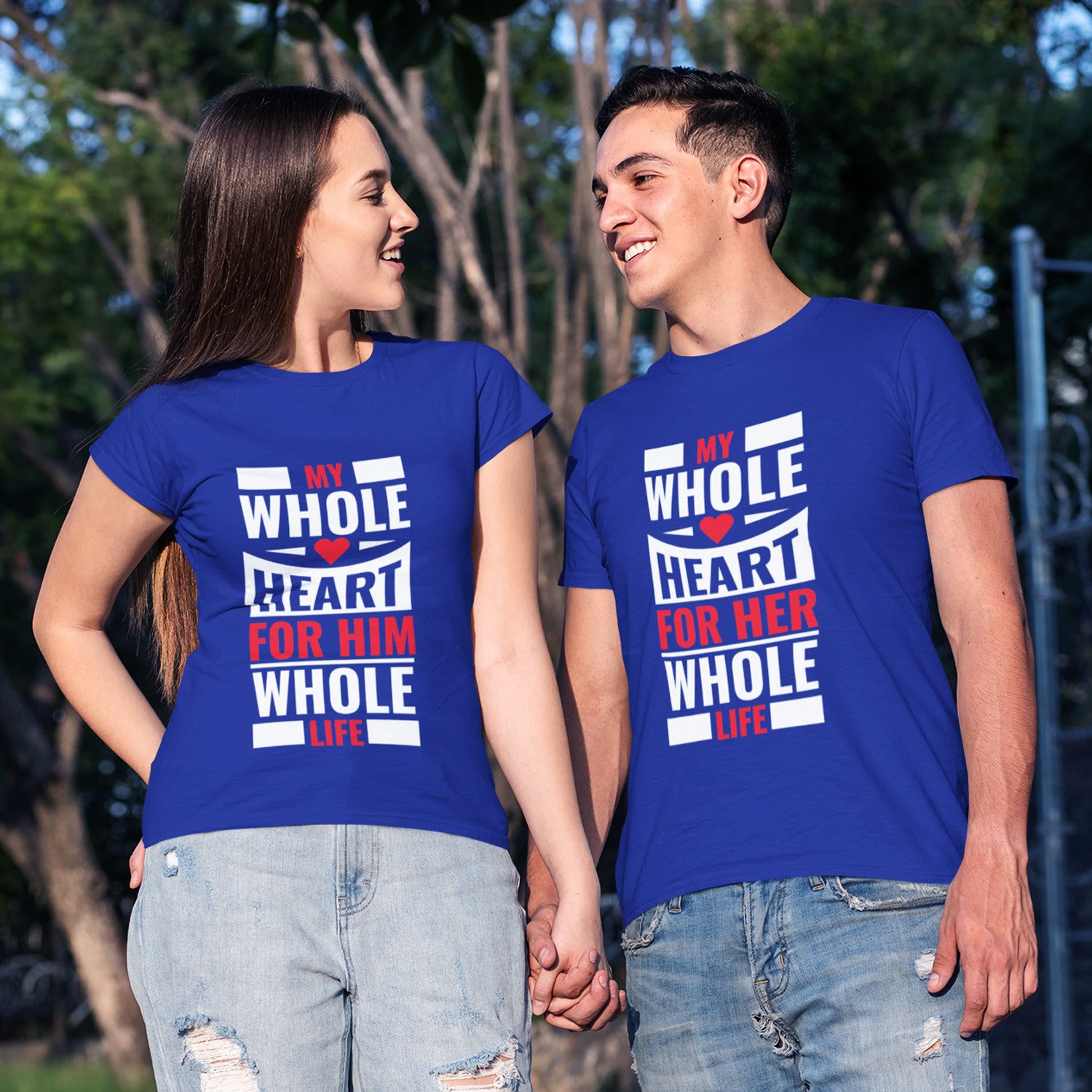 Product Description:Perfect for you and your special one, our My Whole Heart For Him Whole Life, My Whole Heart For Her Whole Life Couple T Shirts are a must-have for every loving couple. These couple t-shirts are just excellent to go out on a date with your cute partner.