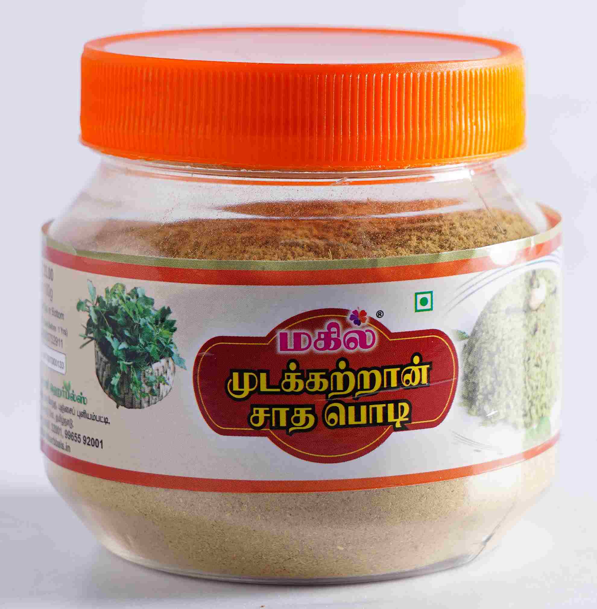 Sada powder is a popular dish in India, mostly in southern parts of the country. Sada powders are made with spices that give the rice an extra flavor. Mahil sada powder is made more healthily with herb extracts. These sada powders are not only tasty but also healthier. Mahil Balloon plant(mudakatraan)Sada powder contains Mudakatraan, horse gram(kollu), Bengal gram, fenugreek, dry chili, and salt to taste. It is rich in fiber and iron content. It helps to cure sprains, shoulder, and knee pain, and also helps to cure muscle stiffness.
