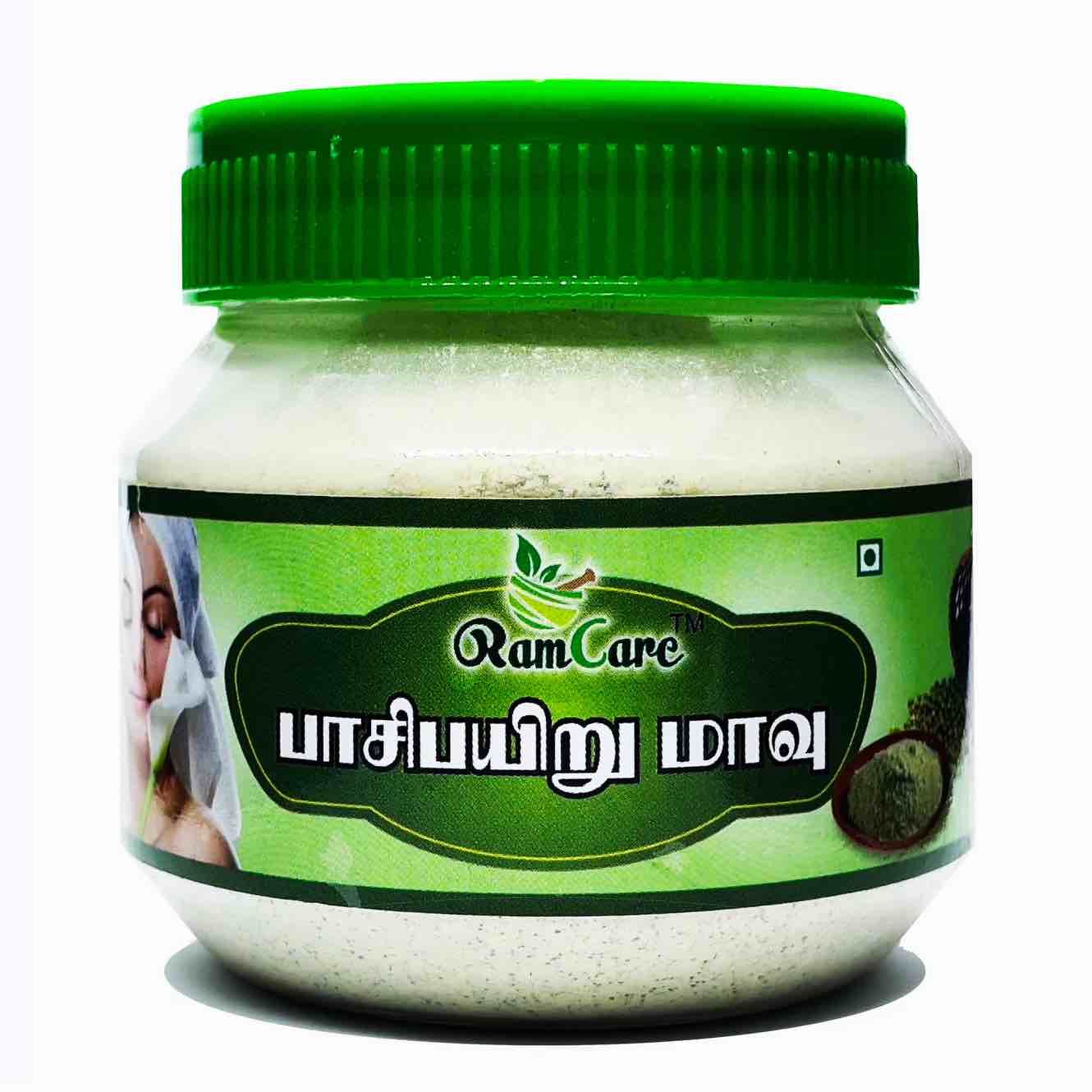 Mung bean (mung bean powder) or green gram (common name), paasipairu in Tamil, contains high levels of proteins, calcium, potassium, and fiber. Applying green gram to the skin, hair, and whole body acts as a natural scrub to remove dead skin cells, open pores, clear acne, and change dry skin, and helps to maintain even skin tone.